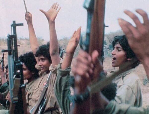 هاینی سرور: فیلم با سکانسی از تصاویر با رنگ ثابت آغاز میشود که به نوعی خلاصه شرایط در منطقهی آزادشده است و روی این تصاویر یکی از جنگجویان ارتش خلق یکی از ترانههای جنبش آزادیخواهی را زمزمه میکند. این سکانس میخواهد بیننده را به همذاتپنداری با انقلاب برانگیزد و در عین حال اعلام کند که در آغاز مردم بودهاند. روند فیلم را به دو بخش میتوان تقسیم کرد. بخش اول و کوتاهتر دربارهی جرائم امپریالیسم و همپیمانانش در منطقه است. بخش دوم و بلندتر گزارشی از وضعیت منطقهی آزادشده است. امپریالیسم در حوزهی خلیج از خلال مستندهای تلویزیونی تحلیل میشود. بخش مربوط به امپریالیسم سیاه و سفید و بخش مربوط به انقلاب رنگی یا سرخگون است. در مواردی که مستندهای بخش امپریالیسم تصادفاً رنگی بودند من نسخه سیاه و سفید از آنها تهیه میکردم… به نظرم تبدیل صحنهی پرواز هواپیماهای نیروی هوایی سلطنتی به صحنهای زیبا کار خطرناکی بود. در مجموع فکر میکنم به لحاظ سیاسی خطرناک است که در نمایش صحنهها و انتخاب صداها بین نیروهای ظالم و نیروهای آزادیخواه تمایزی ایجاد نکنیم. در رابطه با صداهای این فیلم هم بگویم صدای همان رزمندهای که گفتم روی تصاویری که از آن سوی نردهها گرفته بودیم حرف میزند و همان صدا هم خواستار وحدت در مبارزه میشود. پس واضح است که فقط از تصاویر بخش امپریالیسم استفاده کردیم چون ملت عرب نمیتوانستند تاریخ خود را روی فیلم ثبت و ضبط کنند. پس وقت آزادی از هر لحاظ فیلمی شدیداً جانبدارانه است. از جنبه مونتاژ هم باید بگویم نمیشود تصاویر هر دو سمت نردهها را به هر ترتیبی چید و به بیننده گفت یک سمت را انتخاب کند، چون اینطوری ظلم و آزادی، عدالت و بیعدالتی همه در یک سطح قرار میگیرند. فیلم ساختاری دارد که نافی مفهوم بورژوایی «بیطرفی» است و آشکارا جانبداری میکند. بیآن که لزوماً دشواریهای این مبارزه و تناقضها را پنهان کند یا به ورطهی پیروزیگرایی بغلتد. میخواستیم کلِ مونتاژ تحلیلی از چیستیِ جنگ خَلقی به دست دهد. ابتدا با رزمندهای مصاحبه میکنیم و نشان میدهیم شروع جنگی از این دست بسیار سخت است چون عموماً ابزارهای موجود کمشمارند و باید به توان خود تکیه کرد. سپس علل قوت انقلاب را تحلیل میکنیم که عبارتند از بسیج تودهها، وحدت مردم و آزادی زنان. فیلم قصد نمایش این اصل را دارد که در جنگ خلقی ارتش در خدمت مردم است. پس متوجه نقش سیاسی و نیز نقش سازنده ارتش آزادیبخش میشویم. در اواخر فیلم، دلایل موفقیت جبهه آزادیبخش در صحنهی کنفرانسی خلاصه میشود که در آن یک رهبر سیاسی توضیح میدهد «ایدئولوژی هدایتگر اسلحه است.» زیرنویسهای فیلم بیننده را به نوعی برداشت سیاسی هدایت میکند و واقعاً هم مهم است که کمک کنیم بیننده عرب از آن حالت شرطی شده که با پنجاه سال مصرف مخدر مانند تصاویر فیلم ایجاد شده خارج شود. زیرنویسها امکان شکستن «زیبایی صحنهها» را با تشویق بیننده به حفظ دیدگاه انتقادی فراهم میکنند و کاری میکنند به هر سکانس به چشم درس سیاسی بنگرند، نه صرفاً یک رشته تصویر. اما از این زیرنویسها زیاد در فیلم نگنجاندم چون زیادیشان ملالانگیز میشد. باید هم از سر رفتن حوصله بیننده پرهیز کرد تا از پای فیلم بلند نشود و هم از سرگرم کردنش اجتناب کرد تا قوه تفکرش را از کار نیفتد. در تدوین تمام سعیم را کردم که از این افراط و تفریط بپرهیزم. از سوی دیگر کوشیدم از فرهنگ عامه منطقه حداکثر استفاده را بکنم و مثلاً ترانههایی را که زرمندهها میخواندند وارد فیلم کردم. این ترانهها سوای غنای سیاسی، از جنبهی هنری هم بسیار زیبا هستند. سرانجام هرجا که میشد به جای صدای راوی از گفتگوهای واقعی استفاده کردم. روی هم رفته، کوشیدم سنت شفاهی عربی را که جزو عناصر اصلی فرهنگ مردم کشور ماست وارد صداهای فیلم کنم. در فیلم مبارزاتی اگر واقعاً بخواهی نظر مخاطبانی را که فیلم برای آنها ساخته شده جلب کنی الزاماً باید به فرهنگ مردم ارجاع بدهی. از جنبه تصویری هم زیرنویسها نشاندهنده سنت عربی بودند.